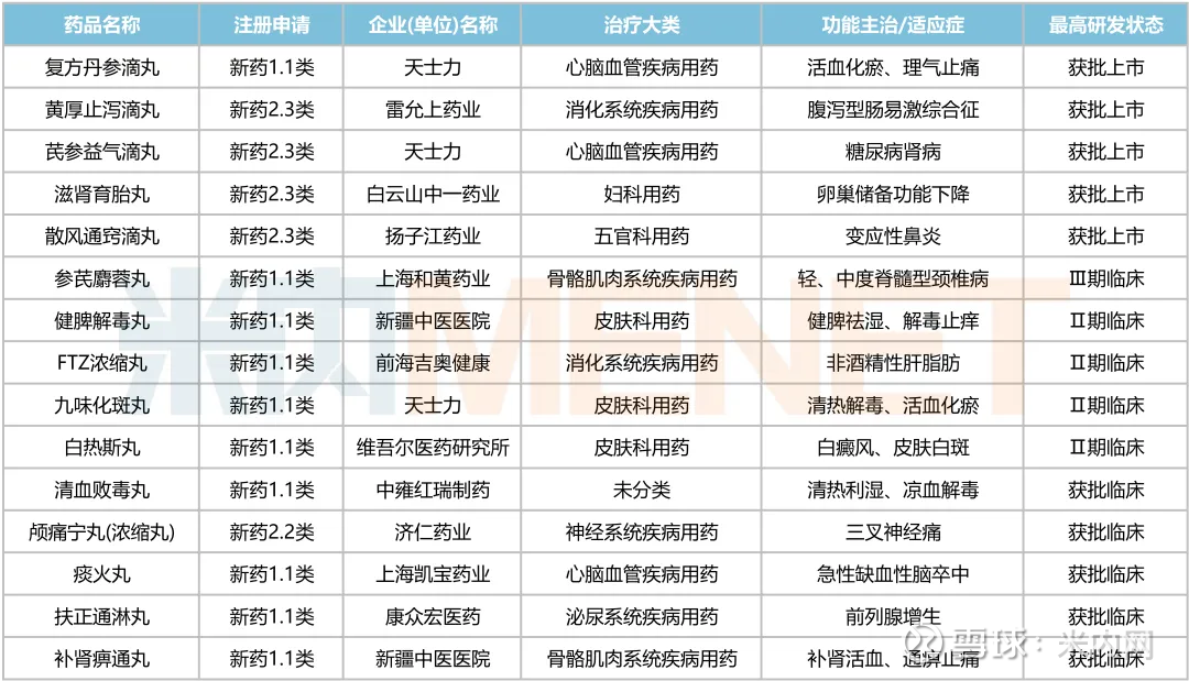 2020年以来获批临床的中成药丸剂新药