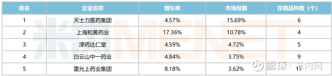 来源:米内网中国公立医疗机构药品终端竞争格局