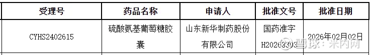 米内网数据显示,早前新华制药在抗炎药和抗风湿药市场已获批了8个产品,本次获批的硫酸氨基葡萄糖胶囊是公司在非甾体抗炎和抗风湿药小类以外新获批的产品,同时也是公司在2026年首个获批的产品,意义重大。