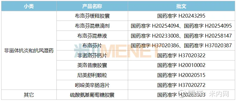 表1:新华制药已上市的抗炎药和抗风湿药