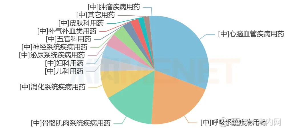 2025Q1-Q3中国乡镇卫生院市场中成药大类分布情况
