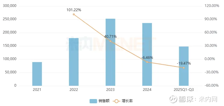 在中国三大终端六大市场(统计范围见文末),米诺地尔的销售额在2020-2023年实现了高速增长,2024年微跌6%左右,销售额达到了23.6亿元,2025年Q1-Q3跌幅扩大,但依然是超10亿大品种。从渠道来看,零售药店终端(城市实体药店+网上药店)一直是米诺地尔的销售主战场,2022-2025年Q1-Q3均占了八成以上。