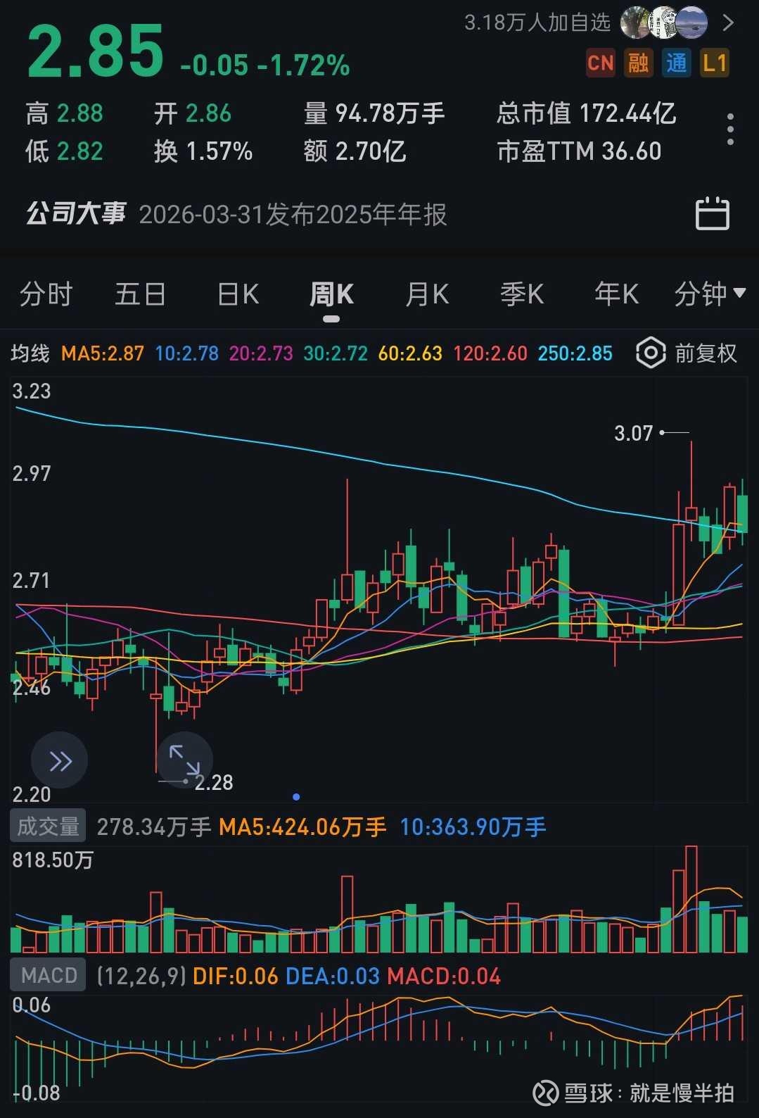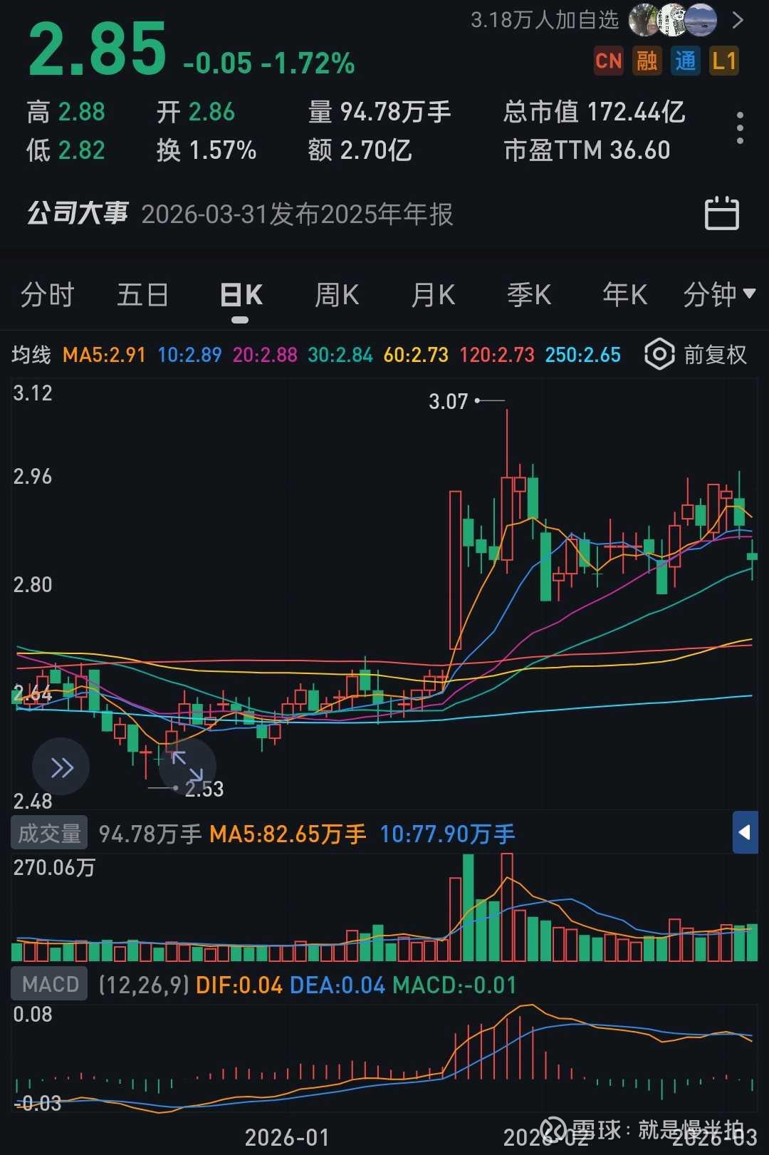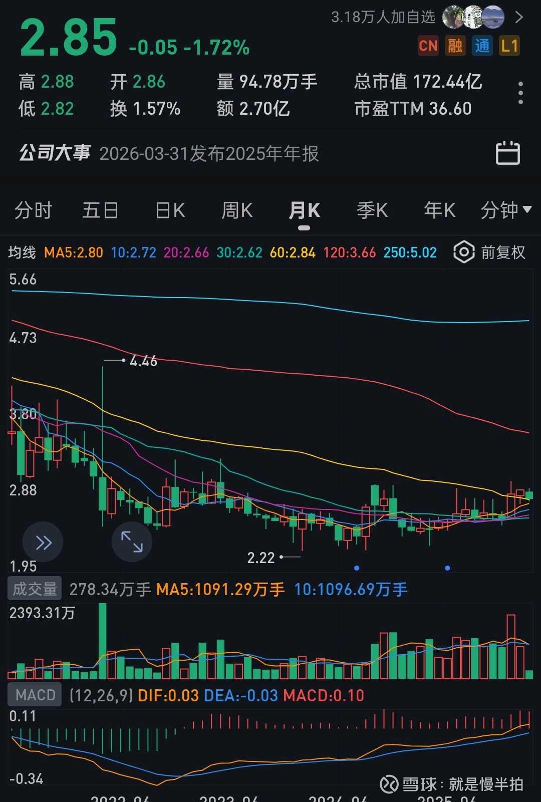 止损价2.80 元