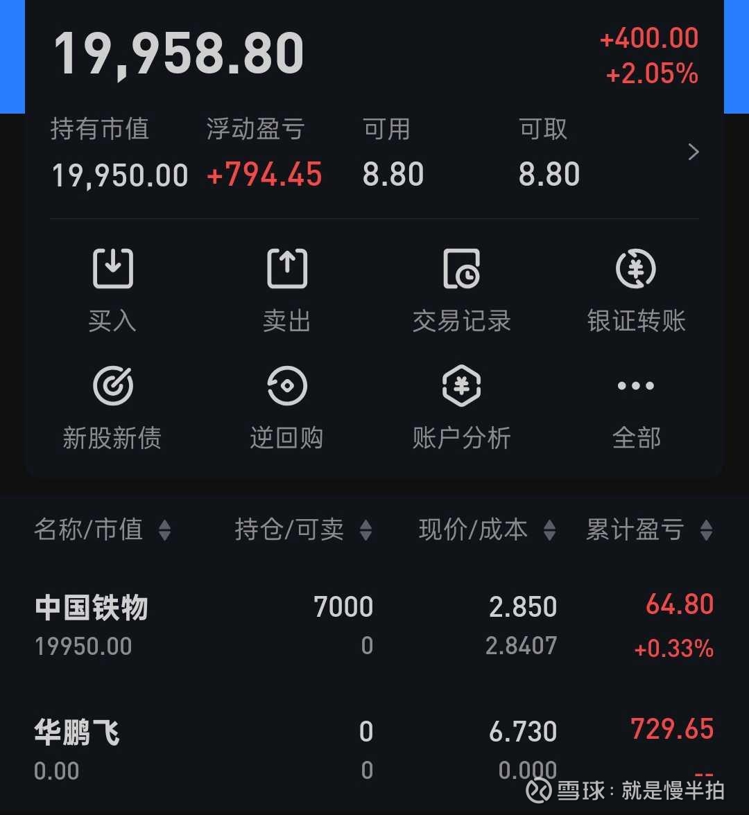 今日止盈hp飞,走势不如预期 盘中没有超过昨日高点,属于走弱,在 6.63 元止盈了