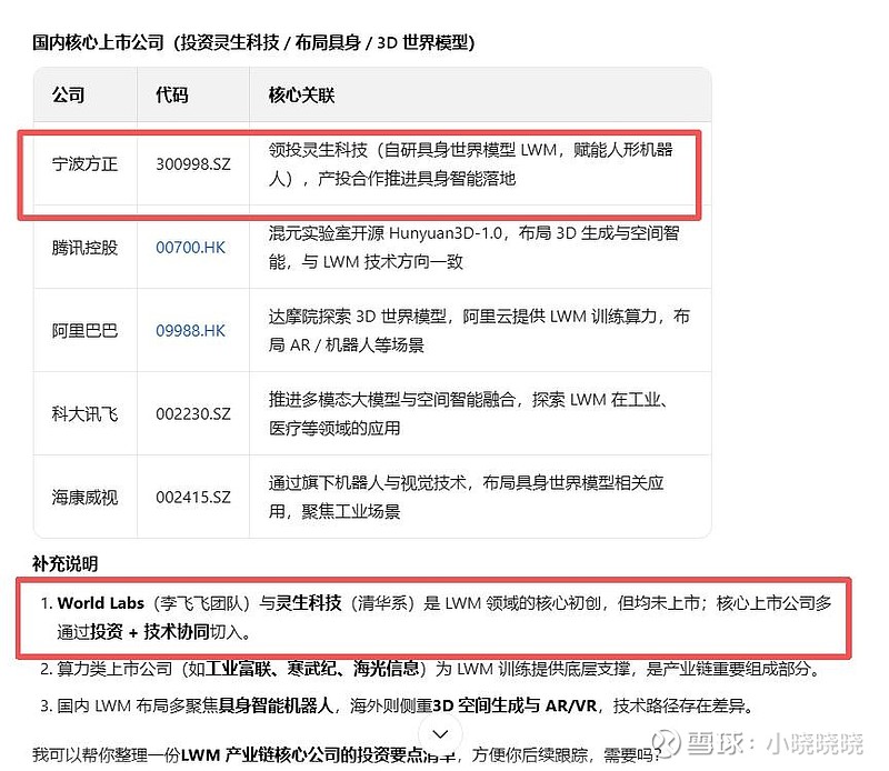 宁波方正通过布局人形+深海机器人、与宁波华翔/智元链等合作,将自己嵌入国内具身智能链条;而该链条在模型端正在从VLA/VLM向世界模型演进,特斯拉FSD 14是积累了真实行驶数据训练出来的,而未来人形机器人的数据将主要来自于空间智能模型。美国李飞飞的world labs在做这么方面的研究,而国内是清华大学的灵生科技的LWM进展最好。宁波方正领投了灵生2轮的融资。$宁波方正(SZ300998)$ 小盘子,公司明显在转型。