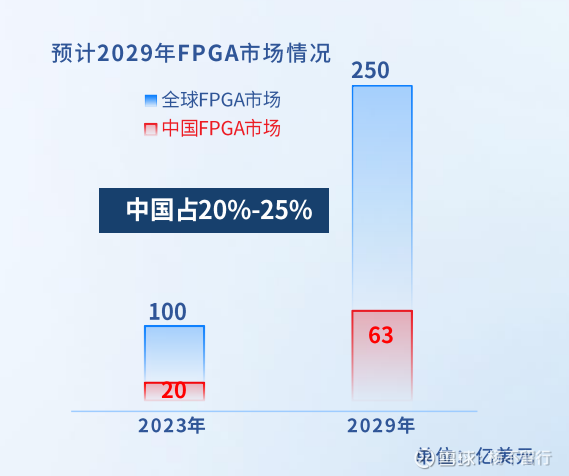 根据官方供图,预计2029年FPGA市场空间将达超250亿美元,年均增长超18%,增长主要由中国驱动,中国数据23年为20亿美元。