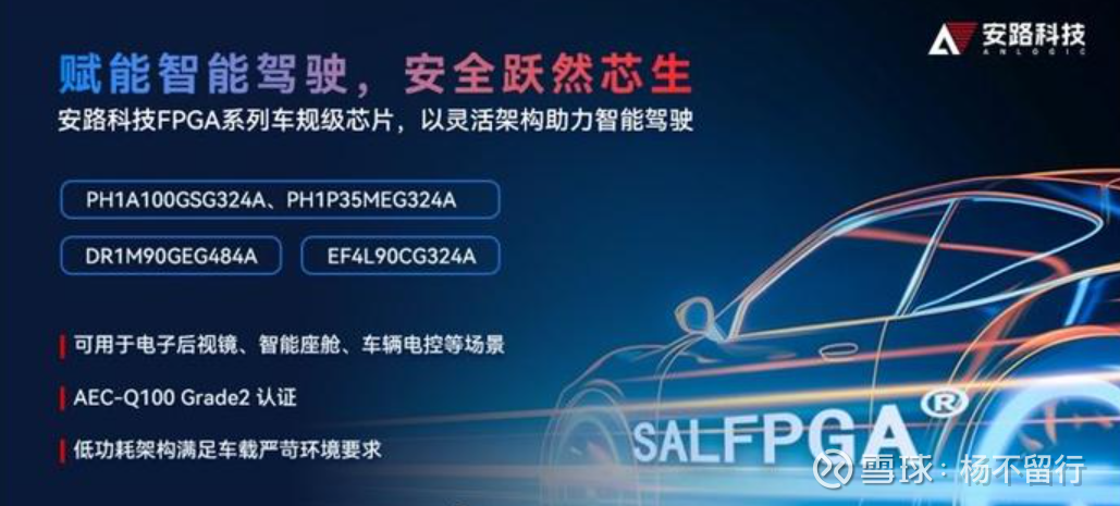 安路科技的车规级芯片已通过严格的AEC-Q100 Grade 2认证,凭借高灵活性、低功耗架构满足车载严苛环境要求,成功应用于电子后视镜、智能座舱、激光雷达、车辆电控等场景,并实现国内主流车厂的大规模商用。公司目前已形成多元车规芯片产品矩阵,包括PH1A100GSG324A/PH1P35MEG324A(凤凰系列)、DR1M90GEG484A(飞龙系列)和EF4L90CG324A(SALELF系列)等代表性型号,满足不同车载应用场景的需求。