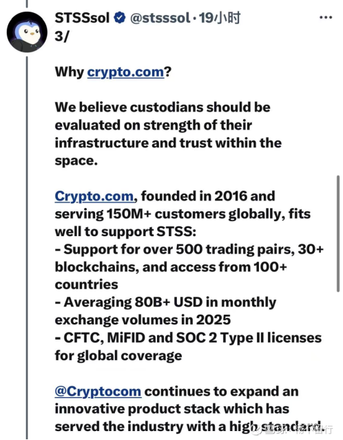 自2025年8月下旬完成超4亿美元PIPE融资后,STSS的加密数字战略版图开始显露冰山一角:手握超200万枚SOL的国库资产,从与Solana生态头部平台BONK达成质押合作,到与生态内规模TOP3的Jupiter交易所敲定战略合作。再到9月29日宣布的与Crypto.com的合作,更是进⼀步拓展其数字资产财库战略,在增加流动性的同时,Crypto.com的机构级托管基础设施及OTC(场外交易)服务,都会让STSS所持资产的管理与运用效率更高。