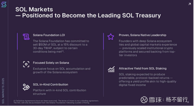 美国纳斯达克上市公司Sharps Technology(NASDAQ:STSS),正是这样一位“铺路人”。作为首家与Solana基金会签署意向书(LOI)的Solana DAT项目,STSS拟以30日时间加权平均价15%的折扣(需满足特定条件)向Solana基金会购买价值5000万美元的SOL代币。