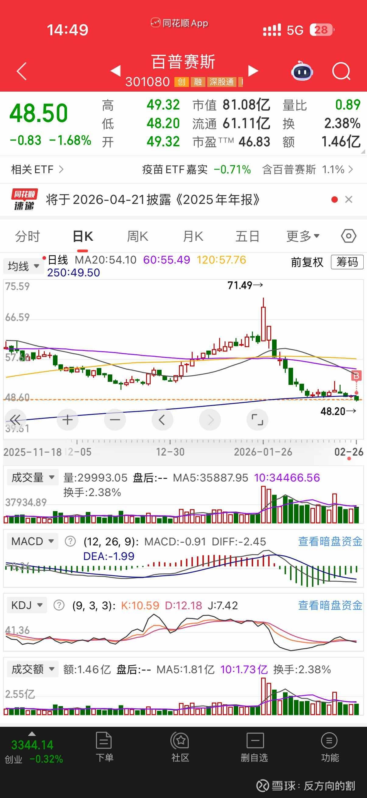 $百普赛斯(SZ301080)$ 48.6开仓,业绩预告发布后,经历短期回调,目前PEG指标已经回到合理范围,下跌空间小,不过小市值股弹性更大,短期内可能还会有小幅度回调。暂定目标价格为65-70元之间$沃尔核材(SZ002130)$ 认为价格目前已处于合理区间,减持。