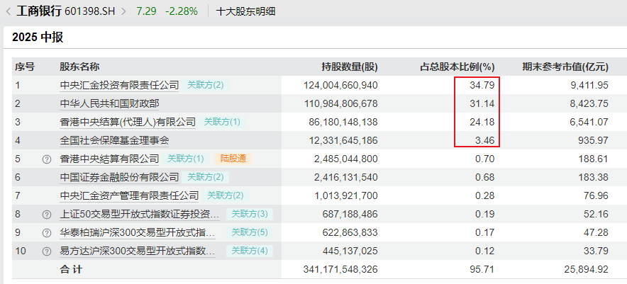 以工商银行为例,前四大股东持有工行总计93.6%的股权,再剔除险资、指数ETF基金持有的比例,能供市场自由买卖的工商银行股票估计不到2%。以工行目前总市值2.6万亿计算,实际自由流通市值估计只有520亿。
