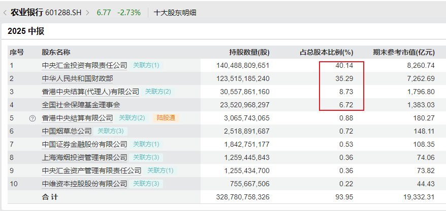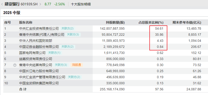 再看农业银行和建设银行,也都是差不多,前四大股东持有农行91%的股权,持有建行96%的股权。再剔除险资、指数ETF基金持有的比例,农行实际自由流通市值估计只有600亿,建行估计只有400亿。