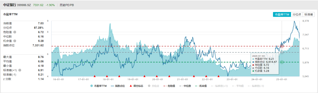 值得注意的是,银行指数的PE估值百分位是87.28%,如果银行净利润不再上涨,那么银行股将无法通过盈利增长消化估值,只能靠股价下跌。