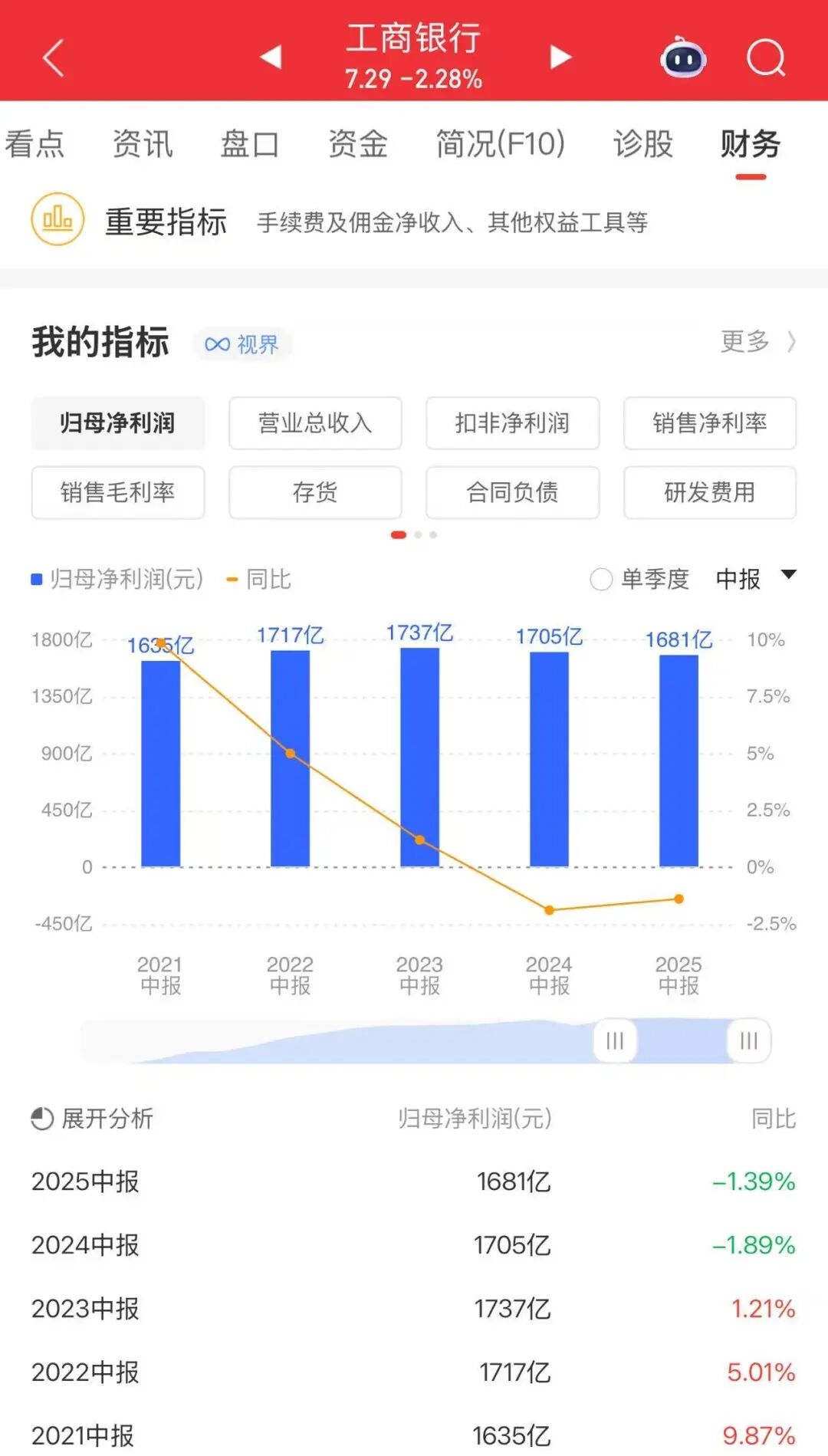 首先,从基本面来看,工商银行今年上半年的净利润同比-1.4%,建行同比-1.4%,农行同比+2.7%,中行同比-1%,招行同比+0%。银行就是做放D业务的,未来一段时间银行收入大概率也是继续小增长甚至不怎么增长。