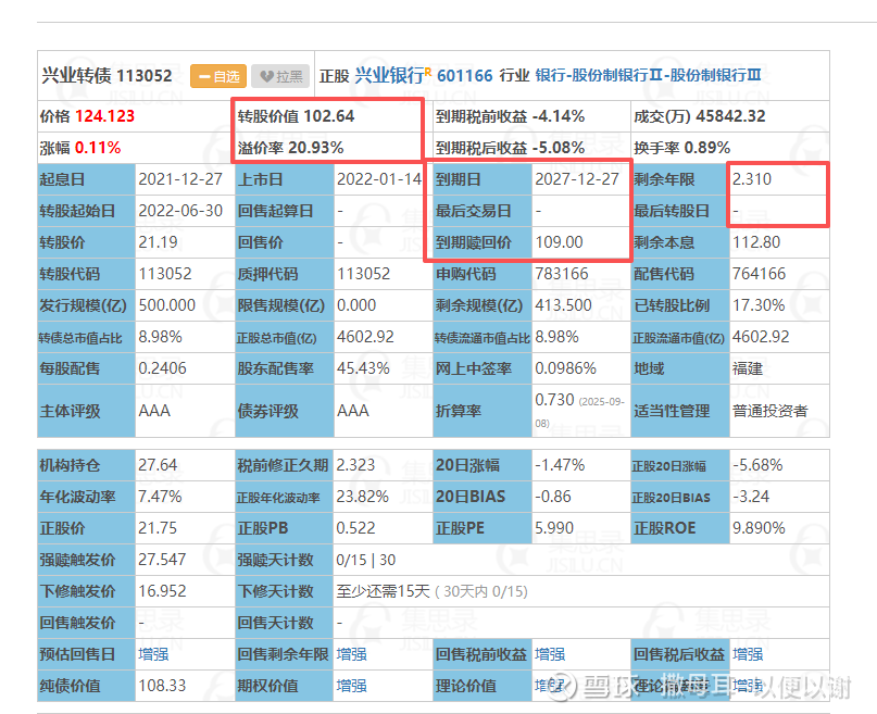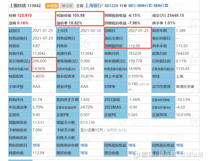 2. 上海银行601229 可转债还有1.3年到期,溢价率 19%,近2个月股份银行几乎都调了20%,上海银行就在其中,中报收入增长4%,利润增长2%,ROE 11%/全年,股息有5.3%. 下个机会很可能就是你!