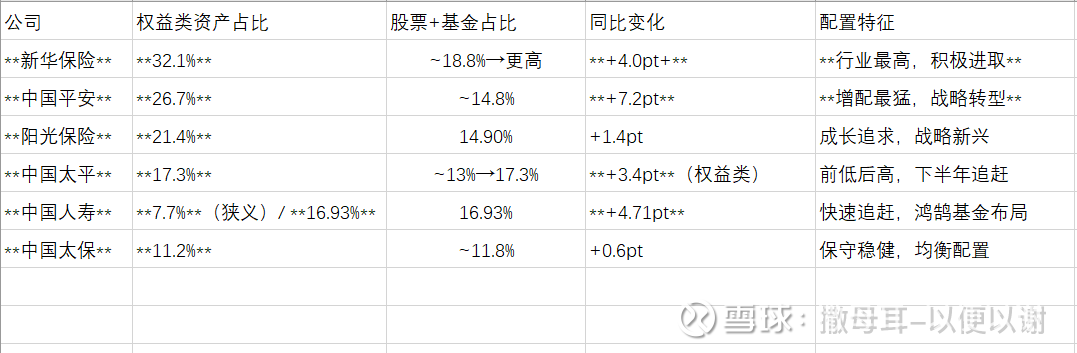 权益配置是2025年投资收益分化的核心战场,重点持有新华H+太平+平安A, 小仓在财险!