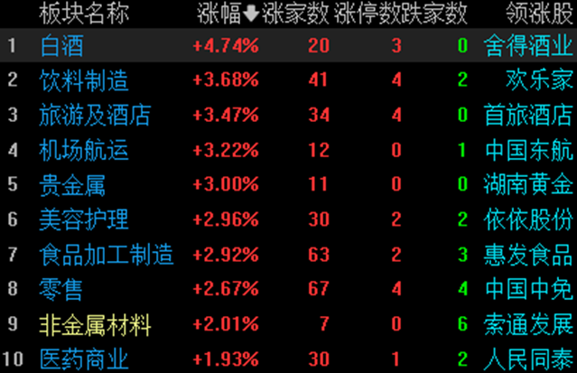 前天,大消费迎来久违的大爆发。从食品饮料,到旅游酒店,再到航空和美容护理,全线大涨。白酒板块大涨4.74%,舍得酒业、酒鬼酒涨停,泸州老窖大超8%。大消费另一个细分,免税龙头——中国中免同样罕见的涨停。A股传统消费大涨的同时,港股新消费也出现了普涨,沪上阿姨一度涨超18%,泡泡玛特涨超8%。