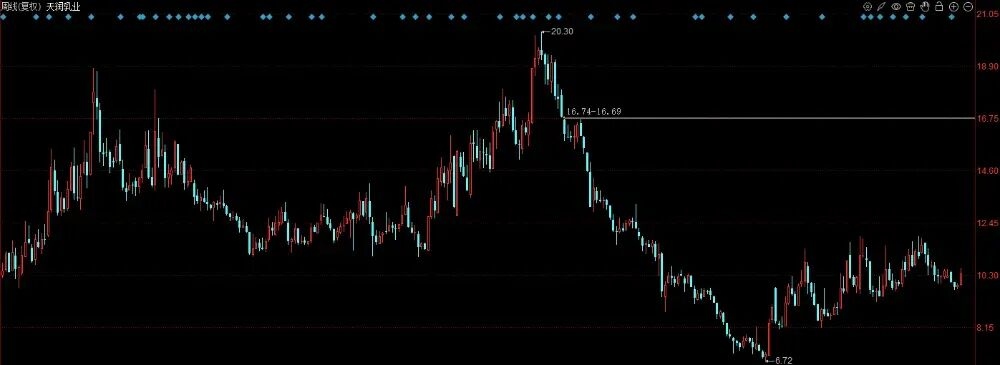 天润从最高20跌到最低6.7左右,跌幅70%。924之后,股价最高接近12,涨幅70%。