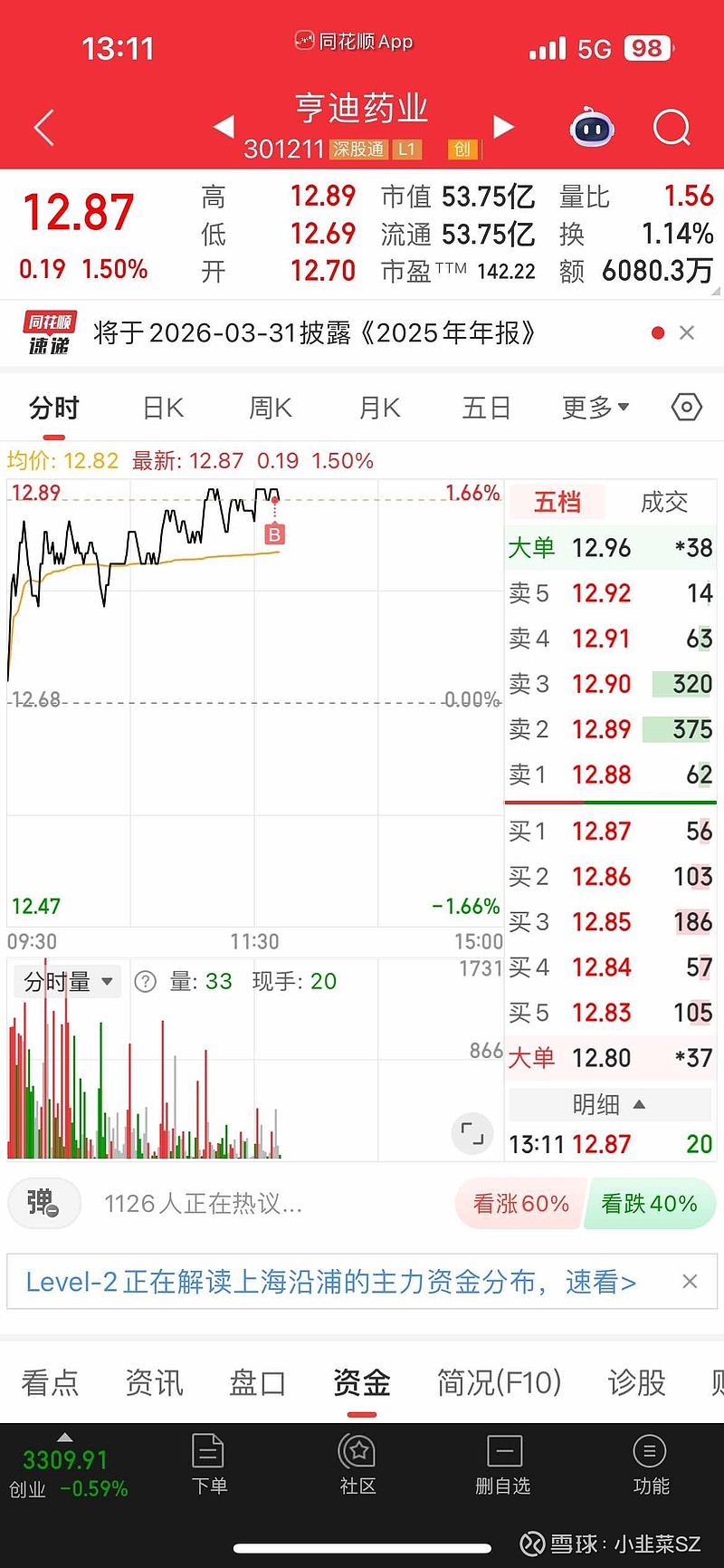 $亨迪药业(SZ301211)$