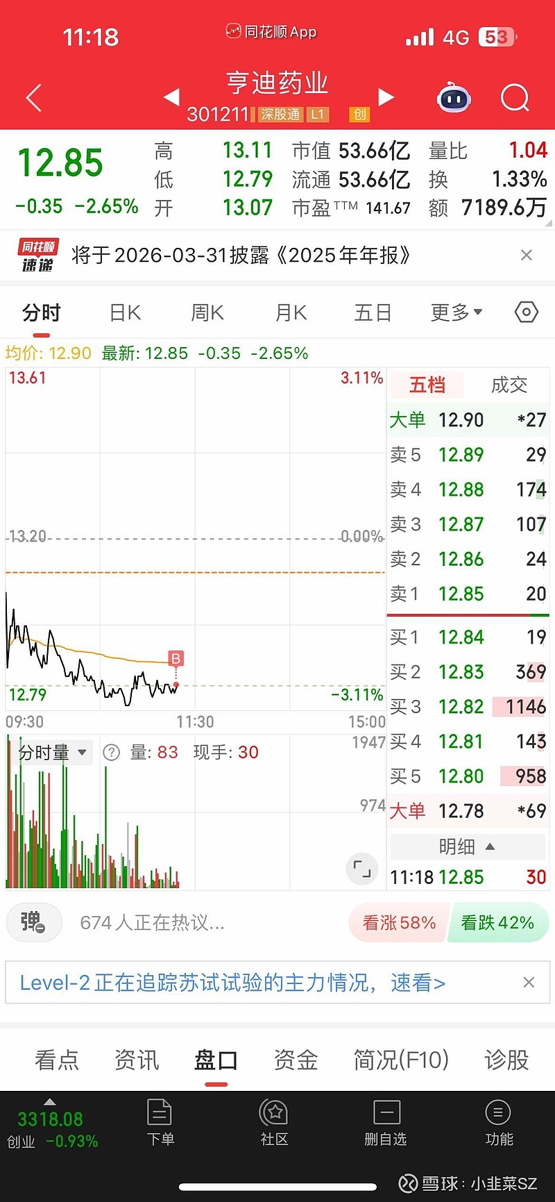 $亨迪药业(SZ301211)$