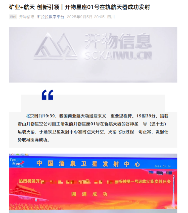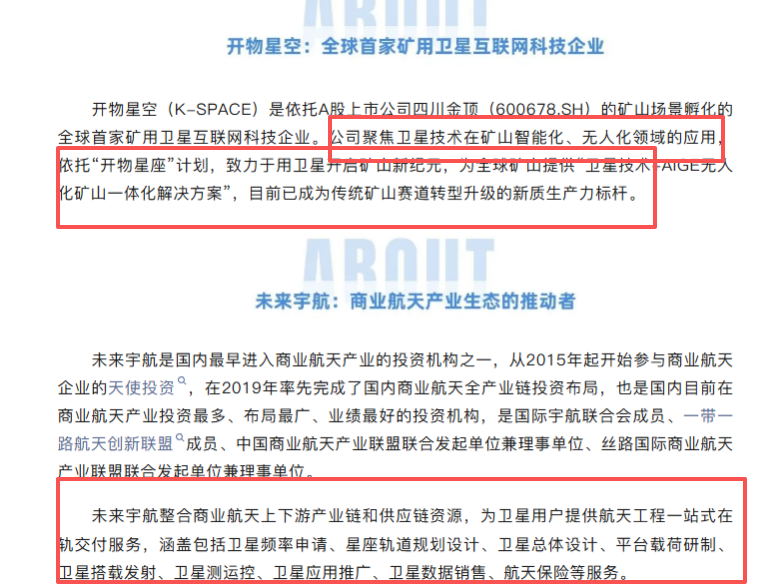 简单说一下,上面黑体字的内容就是四川金顶的孙公司开物星空航天正在做的东西,具体上一下公司公众号的文章截图