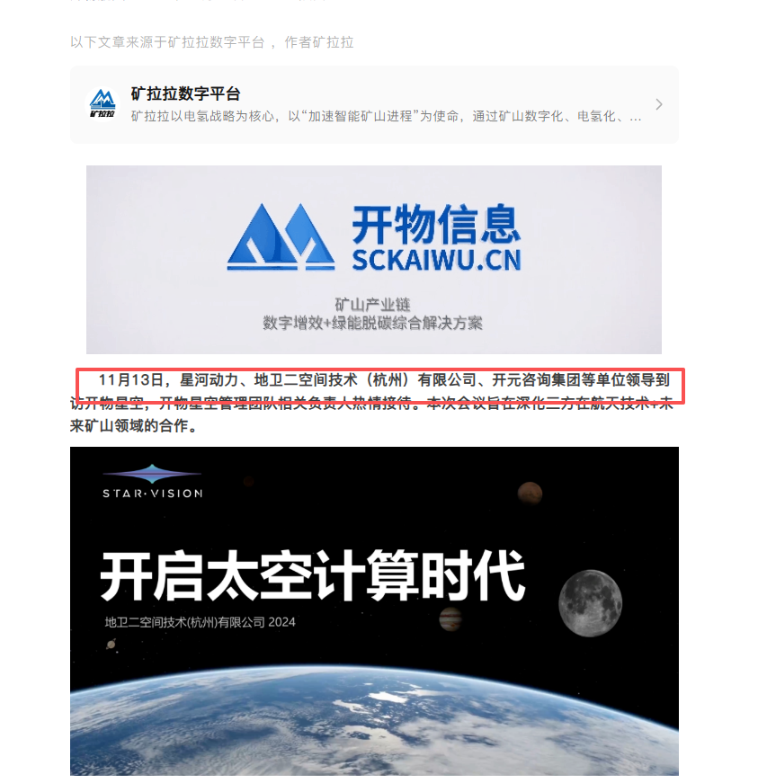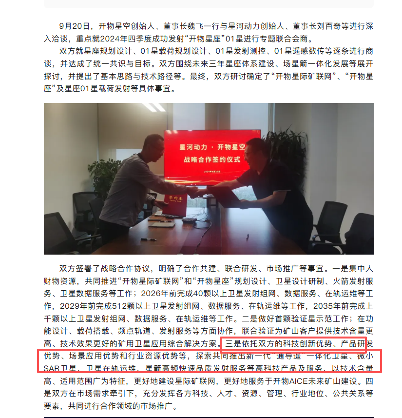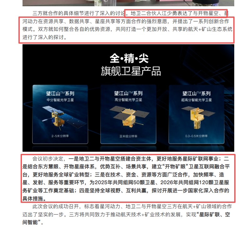 看看跟星河动力,星际开发,中科西光,地卫二这些行业内公司签的合作协议及内容,感觉就是一个已经落地的卫星应用模式,并且这种模式得到他们这些公司的认同,都几乎表示要参与合作和投资