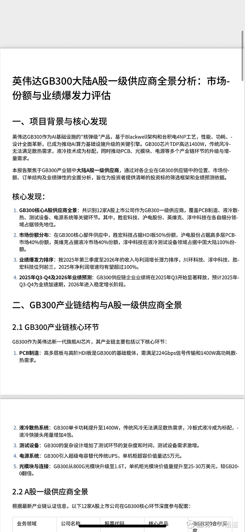 本报告聚焦于GB300产业链中大陆A股一级供应商 ,通过对各企业在GB300供应链中的位置、市场份额、订单结构及业绩弹性的全面分析,旨在为投资者提供清晰的投资标的筛选框架和业绩预测依据。
