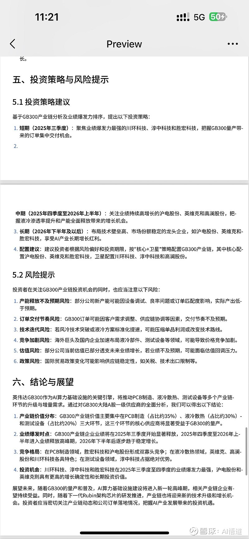 4. 2025年Q3-Q4及2026年业绩预测 :GB300供应链企业业绩将在2025年Q3开始显著释放,预计2025年Q3-Q4为业绩加速期,2026年进入稳定增长阶段。
