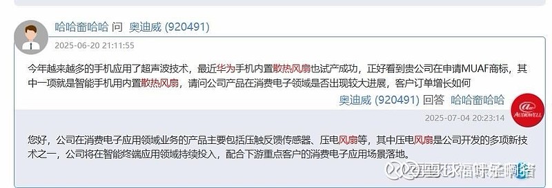 奥迪威在投资者互动中明确表示,其压电风扇技术已在消费电子应用领域取得进展,并正在配合下游重点客户的消费电子应用场景落地。这一表述与华为Mate80系列对散热技术的升级需求高度契合。