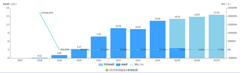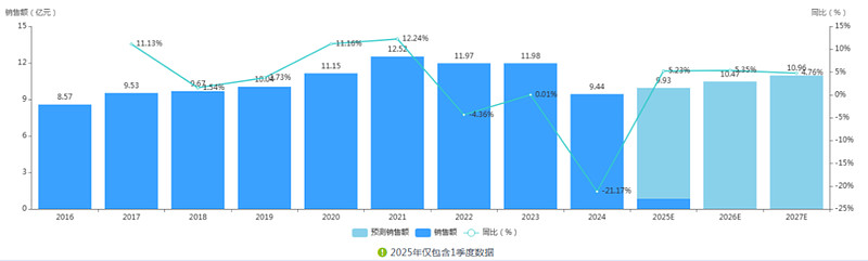 图1 2016年—2025年一季度,奇正藏药国内公立医疗机构年销售额