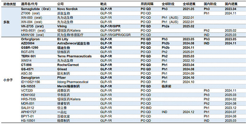 图1 口服减重药管线进展