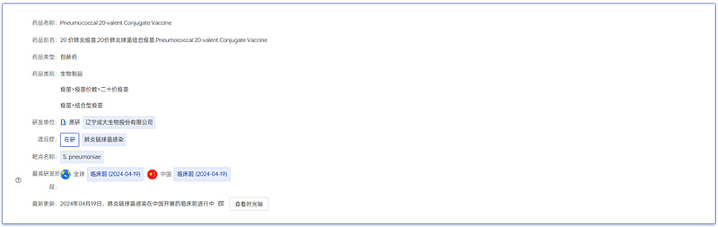 成大生物20价肺炎疫苗药品概览