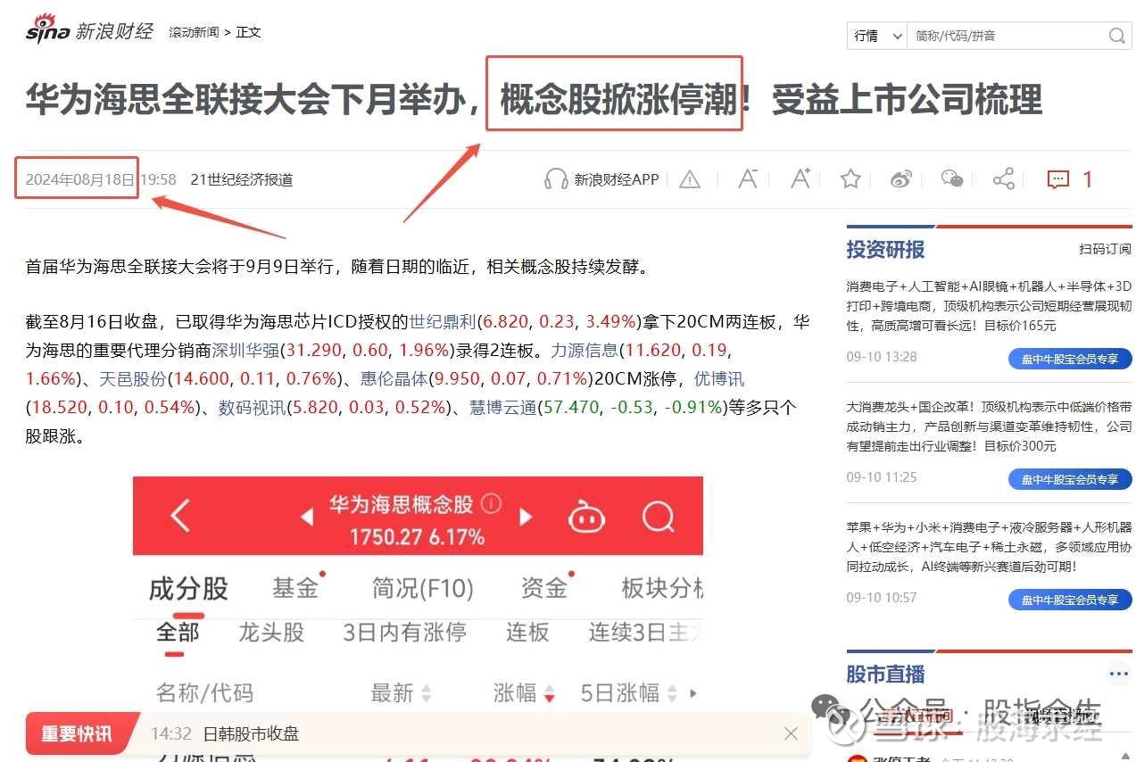 1、东北证券一篇研报中透露,据华为供应链反馈,9月底将首次以公开形式举办“海思全联接大会”,对比去年临时改为闭门会议,这次公开举办展示着着海思芯片更加开放和全面回归的姿态。