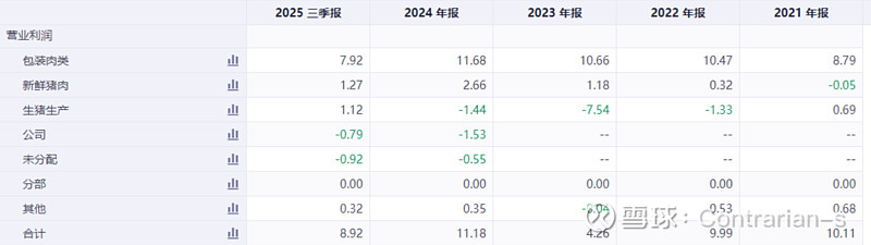 深加工业务的营收占比接近50%,但是营运利润占到90%。深加工业务其实就是把鲜猪肉和冷冻猪肉混在一起深加工,然后进行销售。比如火腿肠、肉丸之类的,都是属于深加工产品。