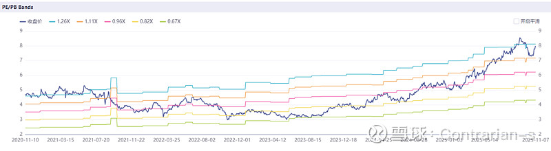 (此图是万洲国际的PB BAND,可以看到其在2023年PB最低,而2023年则是近年来生猪养殖企业亏损最多的年份;2025年生猪养殖企业都开始盈利,万洲国际的PB也恢复到了1以上。)