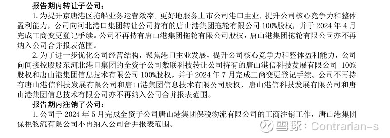二是船舶运输业务,唐山港在2021年将该业务彻底剥离。
