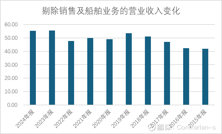 可以看到,剔除后的营收尽管在某些年份略有波动,但自2015年以来整体是上升趋势。