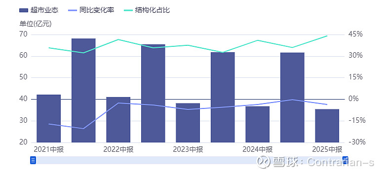 超市业务:仍然处在小幅度收缩状态。超市的调改方向主要集中在折扣、品质和精致生活馆等3个方面,分别对应薄利多销的社区模式、社区高性价比和核心商圈的高品质模式。2025年上半年完成了27家门店的调改,调改后的客流量增长15%,门店数量相较于最高峰时降低了20余家。总体来看,营收仍有小幅度下滑。毛利仍然稳定保持在15%以上。随着调改店数量的增加,可以持续观察其经营情况。