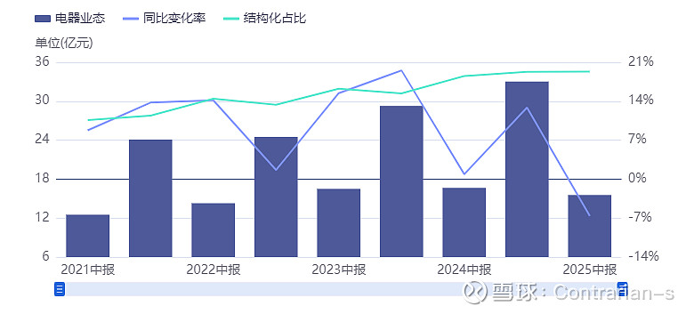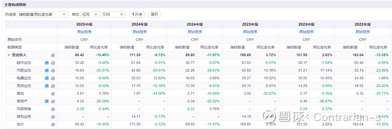 电器商场:近年来唯一营收不断提升的板块,2025H1开始遇冷。此前电器销售营收明显增加,国补是重要因素,也是为了抓住国补的机遇,新开了电器商场。但是2025年重庆补贴暂停,重庆百货的电器销售随之出现小幅度下滑。