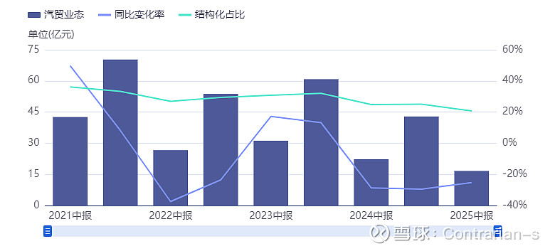 汽车贸易:营收下降主要是由于燃油车价格及销售下降,而公司在新能源品牌的布局非常滞后。2024年公司已同包括小米在内的 9个新能源车品牌达成合作关系,开始新能源汽车的销售。从财报数据来看,营收仍处在快速下滑的阶段,但是毛利率稳定在6%以上的水平。