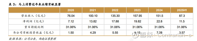 从另一个角度看,马上消费的2025年净利润为19.4亿元。截止2025H1其净资产为145亿元,公司18%的ROE,保守来看完全可以匹配2倍以上的PB,则估值290亿元;而由于稀缺性,上市以后的估值应该会更高。即重庆百货持有的股权价值超过90亿元。