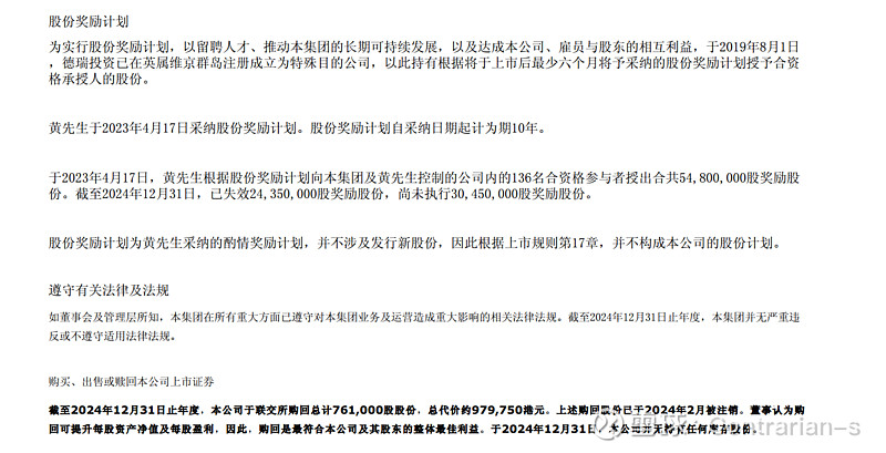 (1)优秀的大股东:公司的股权高度集中,实控人黄楚龙及其家族持有了74%以上的股份。而之所以说大股东优秀,是因为公司的股权激励计划,竟然是大股东自掏腰包用自己持有的股权来做激励!这意味着完全无损小股东的权益,甚至不需要花费公司账面现金回购,实属罕见。此外,公司的股利支付率连年增长,由2020年的41%提升到了2024年的80%。同时,公司此前回购的股份全部注销,虽然金额不大,但也体现了大股东的善意。