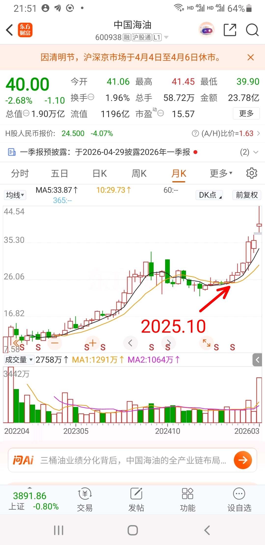 1、大盘指数不跌,是因为三桶油和紫金矿业等权重股支撑着,中海油从四季度开始到2月底涨36%,中石油四季度涨30%,还有紫金矿业2025年涨135%。
