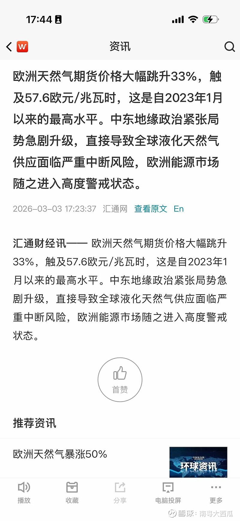 截止目前,欧洲天然气价格又再次飙升了超 30%
