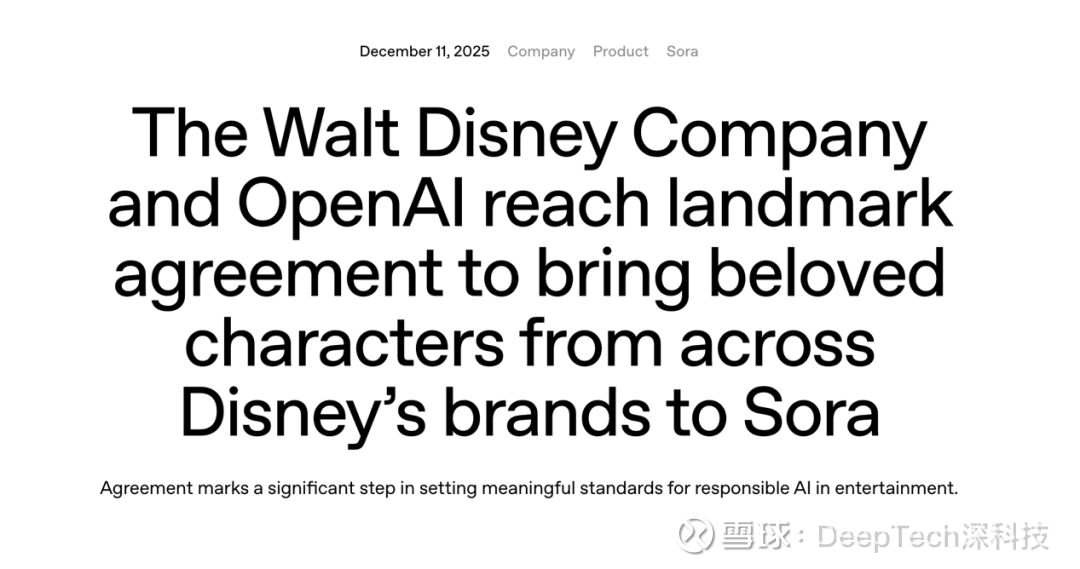 就在今天凌晨,迪士尼和 OpenAI 宣布了一笔让整个好莱坞为之震动的交易:迪士尼将以 10 亿美元入股 OpenAI,并授权超过 200 个旗下角色用于 Sora 视频生成平台。米老鼠、白雪公主、钢铁侠、达斯·维达……这些横跨迪士尼、漫威、皮克斯、卢卡斯影业的经典形象,将正式进入 AI 生成内容的世界。