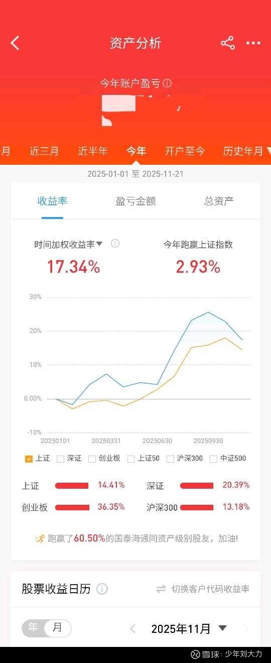 2025.11.2117.34%,苟。。。苟不住了。。。破防。。。史上第二大单日跌幅,单日跌掉3+%,只有85%的仓位但是跌幅远远跑输了大盘2+%,第一重仓$皇马科技(SH603181)$ 跌停,第三四五重仓跌幅均超过大盘,都是今年没怎么上涨的破净的股啊,上苍啊要不要这么惨。。。又加了一点$中泰化学(SZ002092)$ ,巨亏中查看图片