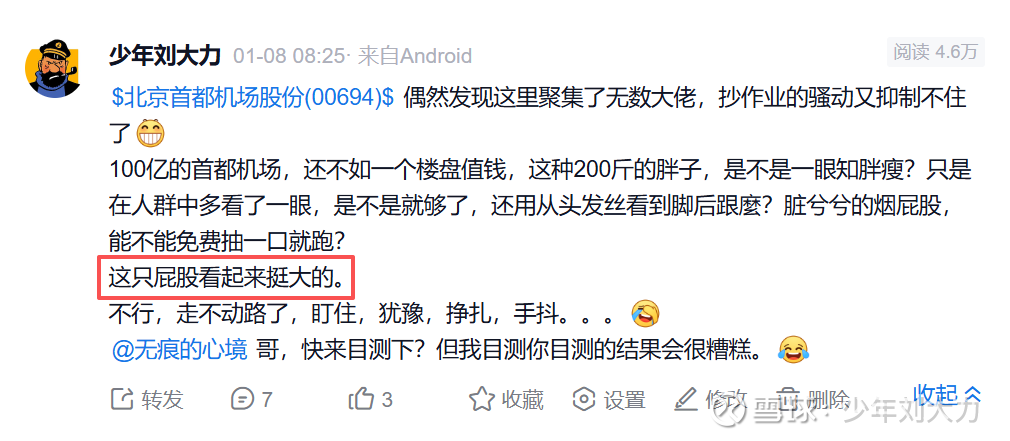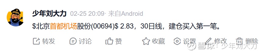 可能还有其他的,我就没关注那么多了,综合来看,众大佬对首都机场基本持有谨慎看好的态度,确定的是便宜 + 底部,不确定的是何时业绩才能反转。但像我这样买成第一重仓的还真没有,我这大概率又是犯二了。。。![]()