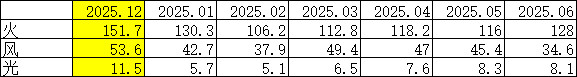 $华润电力(00836)$ 润电12月数据与1~6月发电数据相比,靠着下半年的大量并网,火风光都存在较大的剪刀差,一目了然的可见:26半年报,润电是火风光电量都会高速增长:
