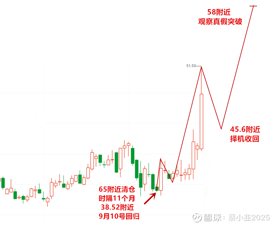 小宇从72.55开始下跌,整整跌了一年;在2025年9月10号,在38.52附近,在65附近清仓之后,重新回归,收回小宇;现在你怎么看?