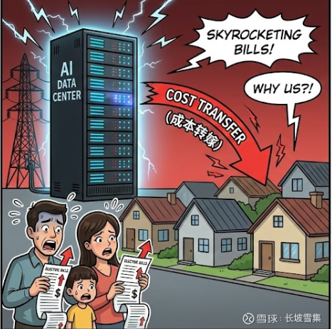而美国是高度市场化的,美国的公用事业公司通常是在“费率基础”模式下运营的。意思是,电力公司每建一根电线杆,经过监管批准后,都可以获得固定的投资回报率,而这笔钱会均摊到所有用户(包括黑哥们和低收入家庭)的每月账单里。如果电力公司按照老规矩,把为科技巨头建电厂、铺电线的几百亿美元算进“费率基础”,那么普通居民的电费就会暴涨。此次干预的核心,就是切断这个传导链条,让科技巨头自己掏钱建电厂(或通过高价合约锁定),而不是让电力公司建好后找老百姓报销。